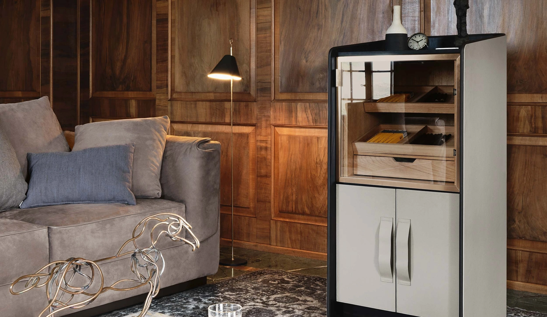 Mobile contenitore Gentleman in legno rivestito in pelle di Flou in pelle: aggiungerà carattere e charme a un locale ammobiliato con mobili e complementi dai richiami moderni. Complementi e contenitori personalizzano l'arredo di casa, riempiendo lo spazio in maniera utile e rendendolo assai funzionale e bello a vedersi. Assai versatili e multifunzionali, i Complementi moderni in pelle rispondono a funzioni diverse: completano le qualità pratiche e l'estetica dell'ambiente. Le composizioni di alto valore estetico del brand Flou arredano l'ambiente con i loro colori e gusto, ricreando particolari atmosfere arredative.