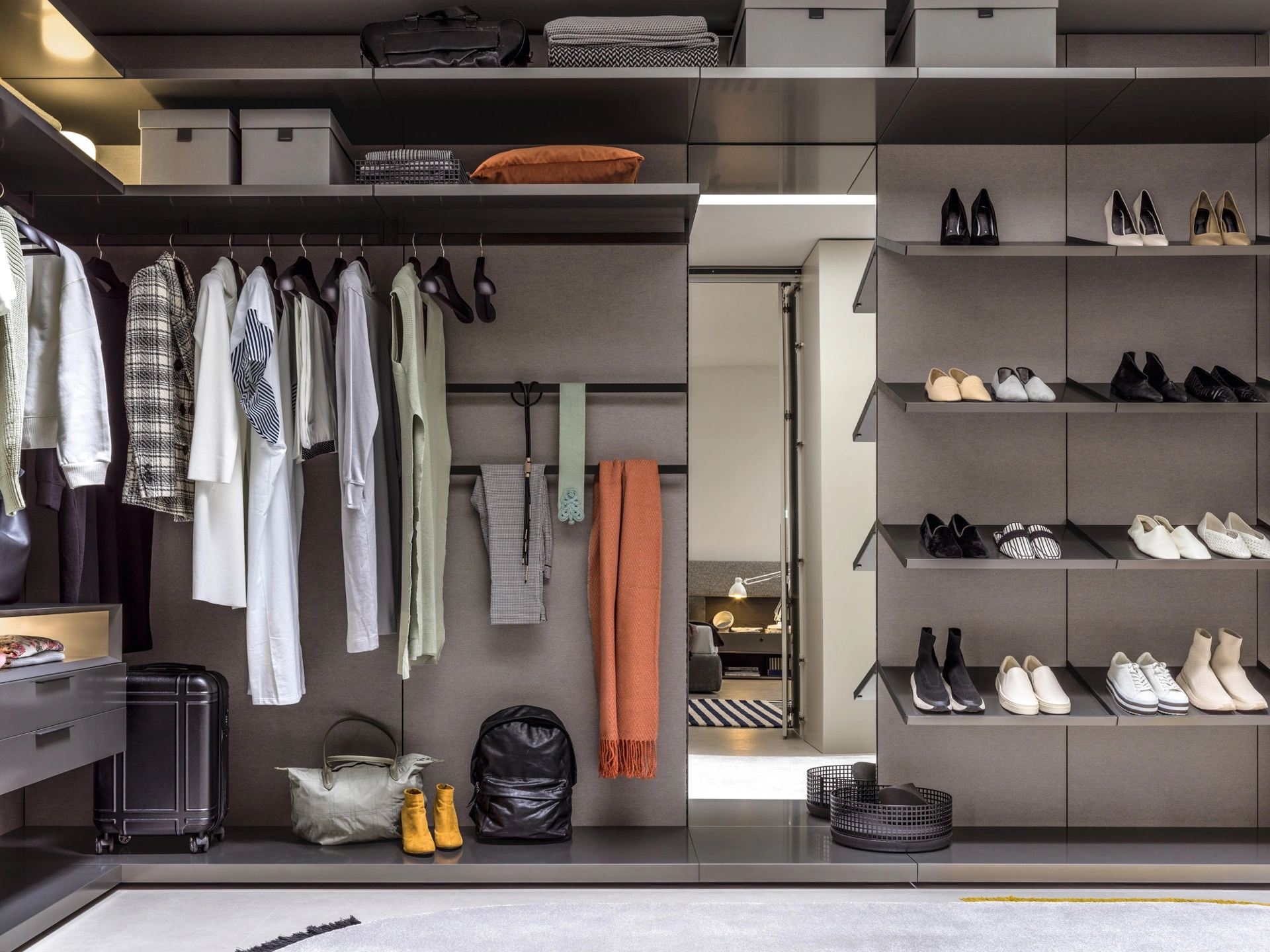 Affidabilità e comfort sono gli aspetti che, insieme a un elevato contenuto estetico, connotano tutti gli Armadi cabine armadio moderni dell'azienda Novamobili. Se vuoi ricreare una stanza funzionale ed esteticamente gradevole, compila il form o vieni da noi per ottenere infromazioni, novità e tendenze nell'ambito dell'Arredamento Casa. Cabina Armadio Break di Novamobili: se cerchi arredatori professionisti per preventivi e progetti, realizza con noi la casa che hai sempre sognato. Una diversificata gamma di arredi in laccato opaco come quest'armadiatura con ante scorrevoli in foto. Visitarci vuol dire visionare in prima persona diverse soluzioni del noto e rinomato brand, sempre di grande design.
