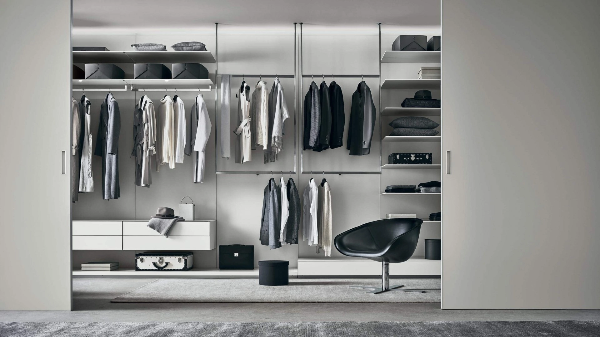 Gli Armadi cabine armadio con ante scorrevoli sono componenti immancabili nella zona notte, per renderla ben arredata, pratica e completa di tutto. Per ammobiliare al meglio una stanza bella e di grande qualità, prediligi le più esclusive soluzioni dei migliori brand, letti, armadi e comodini di alto contenuto estetico. Contattaci e scopri di più sulla nostra linea di Arredamento Casa: potrai ultimare la camera da letto potendo usufruire di una ampia varietà di contenitori moderni, come l'armadio in laccato opaco nella fotografia.