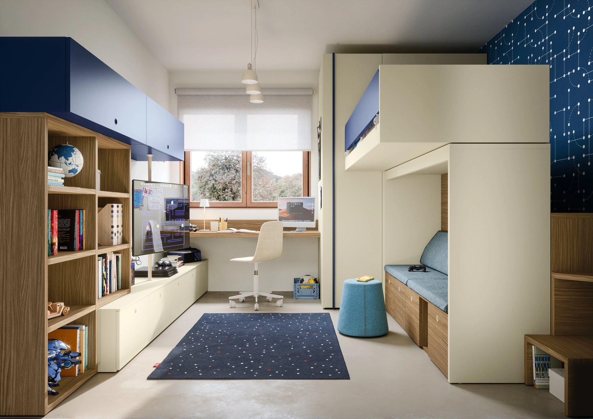 Se cerchi spunti progettuali per decorare alla perfezione la stanza dei tuoi bambini, ti proponiamo la Cameretta con letti a castello Skid di Nidi con finitura in melaminico. Nidi propone un ricco catalogo di accessori da accostare su misura: troverai letto, guardaroba, tavolo da lavoro, sedie e librerie. Questa soluzione in melaminico ultima alla perfezione le doti pratiche e l'estetica della camaretta, poiché è capace di congiungere ergonomia e sicurezza. Nella progettazione della stanza dei piccoli affidati a noi: in negozio proponiamo tutte le più belle composizioni moderne per la loro camera.