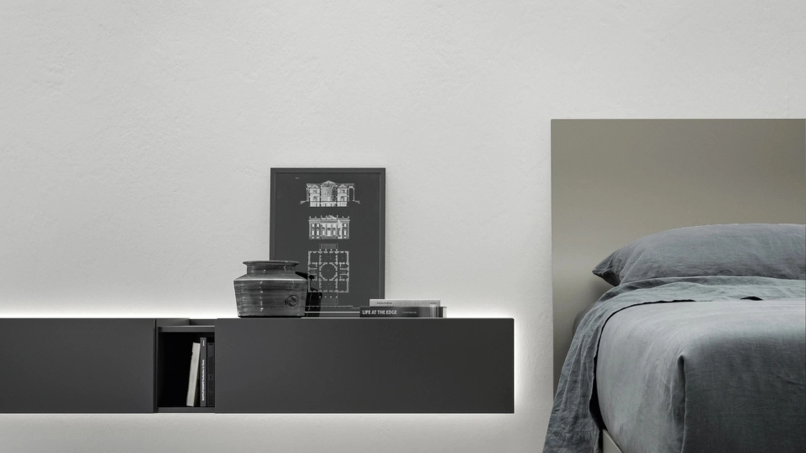 Ottimizza i tuoi interni scegliendo composizioni di oggetti abbinati oppure ricrea eleganti accostamenti di stile e cromie per merito del catalogo di mobili e oggetti accessori per la zona notte che proponiamo, come il modello in laccato opaco presente in foto, anche realizzabili su misura per te. Comodino sospeso Filnox di Caccaro: contattaci e scopri di più sulle nostre proposte d'arredo e arreda la camera come l'avevi sognata. La zona notte contiene anche i Comodini: contenitori utilissimi che offrono l'opportunità di ordinare piccole cose e avere a disposizione superfici per appoggiare per vari utilizzi.