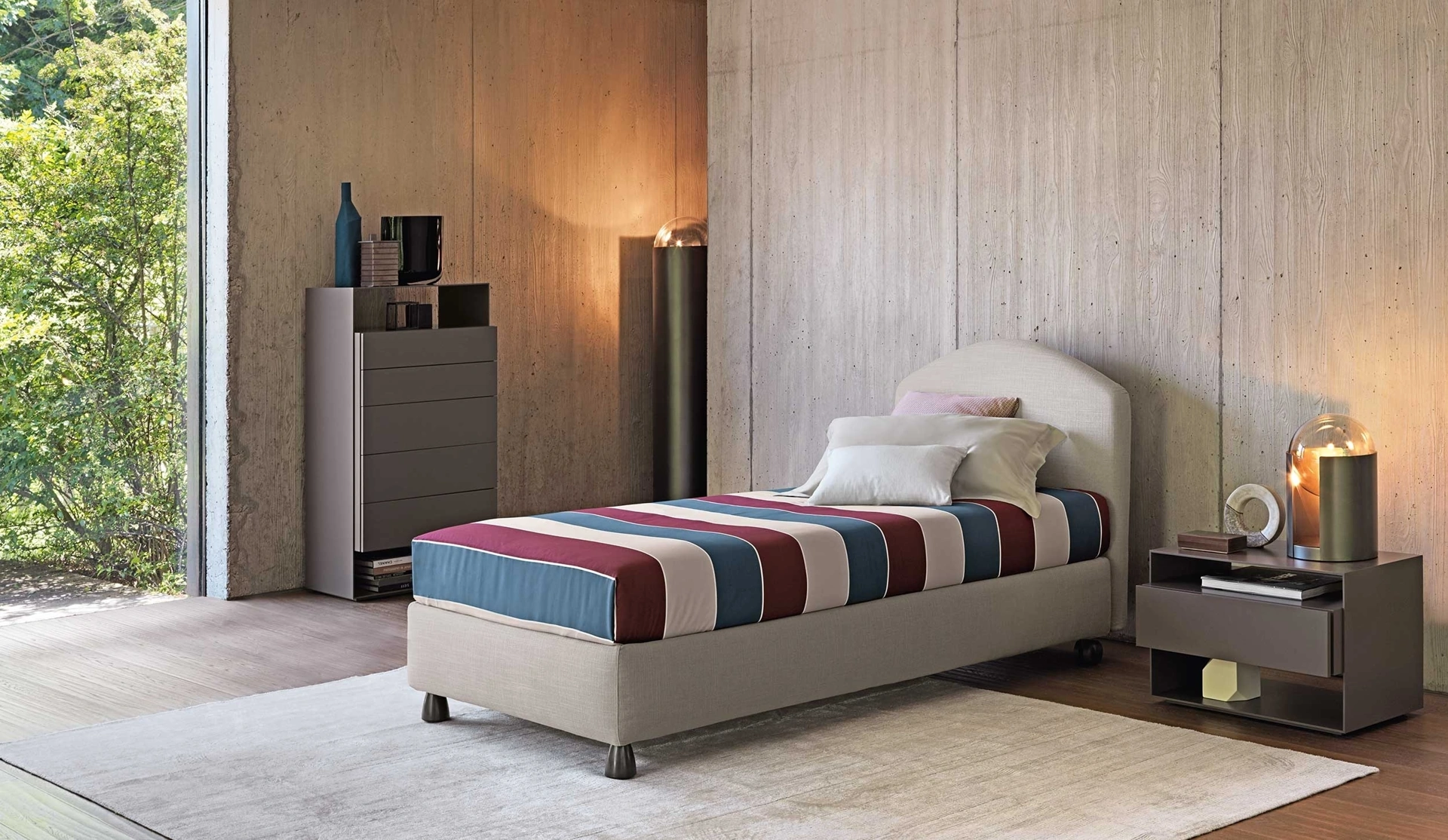 I Letti singoli imbottiti per la stanza dei più piccoli disponibili in negozio risolvono ogni problematicità di spazio e funzionalità, assicurando al contempo uno stile unico. Materiali durevoli e vernici ecologiche contraddistinguono le proposte del marchio: se la stanza ha dimensioni contenute, sono differenti le soluzioni disponibili, sempre in grado di congiungere funzionalità ed ergonomia. Scopri di più sul Letto singolo Magnolia in tessuto di Flou nella fotografia: è ideale per creare al meglio un ambiente ideale per i bambini, bello e ben organizzato, ideale per i tuoi bambini.