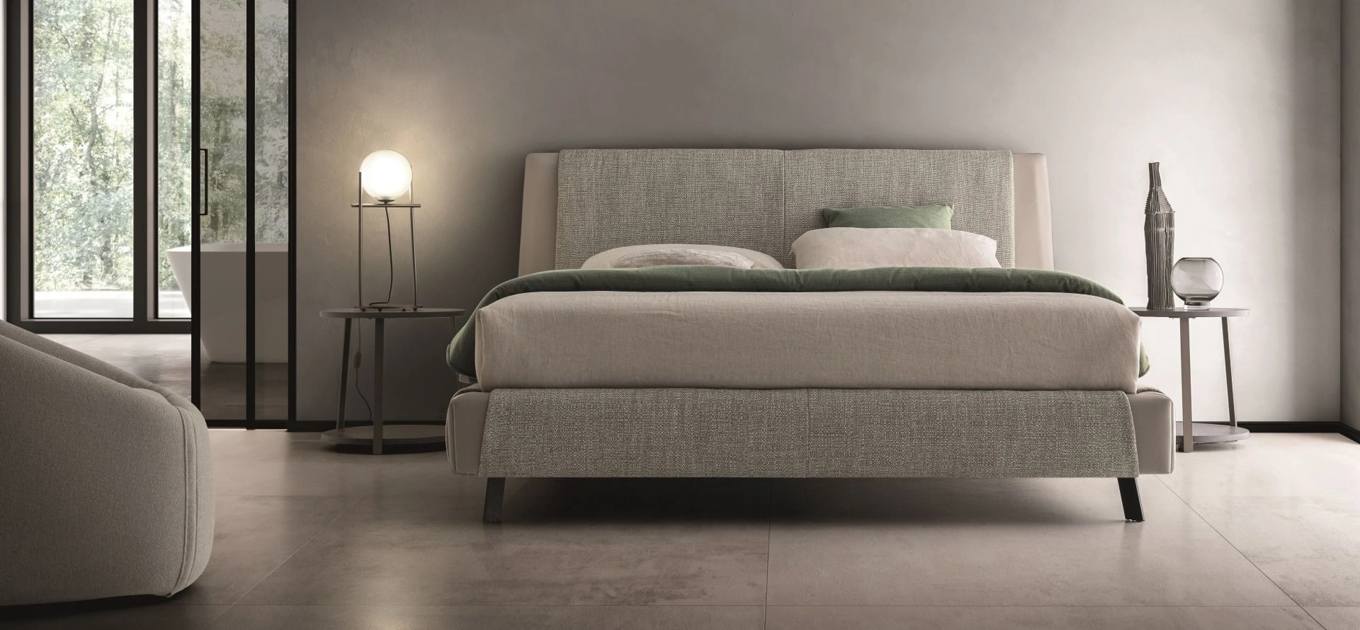 Il Letto con testiera Kailua di Ditre Italia crea uno spazio accogliente e confortevole in ogni camera da letto, garantendoti il riposo migliore e uno stile unico. Scegli tonalità e finiture e realizza il tuo progetto d’arredo nella camera da letto, progettandola proprio come l'hai sempre immaginata. I Letti matrimoniali imbottiti del brand, leader nella produzione di Arredamento Casa per la camera da letto, vengono progettati per essere abbinati a mobili e complementi di ogni tipo, come armadi e comodini, lampade e piantane. Se desideri una soluzione in tessuto, il modello mostrato in foto è connotato da materiali di prima scelta e linee decise, che invitano a goderti un sonno profondo e ristoratore.