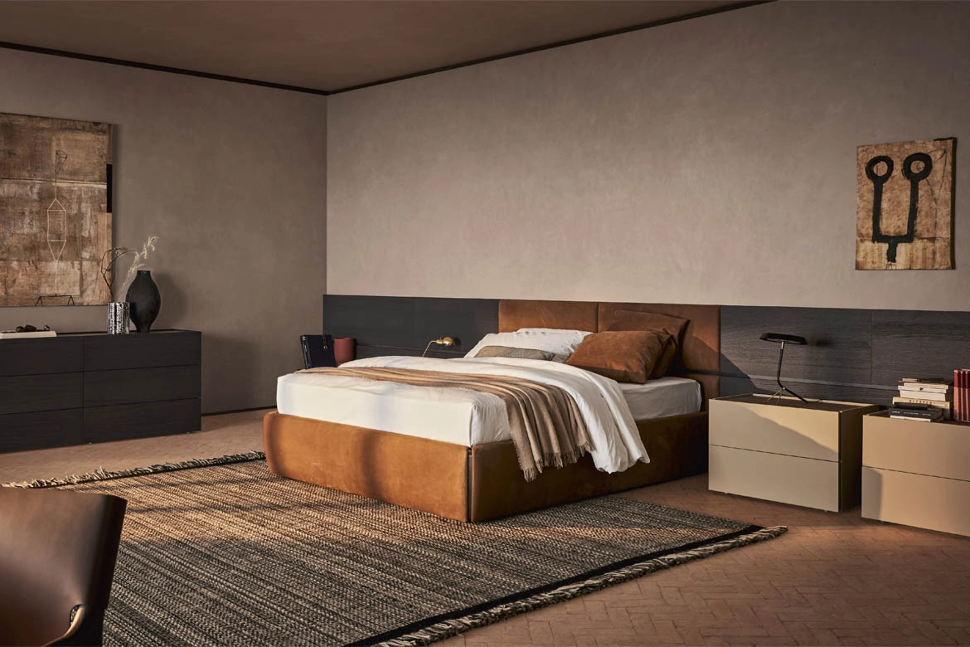 Questa è un prodotto di grande appeal, che porta con sé tutta l'eccellenza garantita dalla pluriennale esperienza del marchio nel campo. Per ultimare perfettamente l'arredo della tua camera da letto è di primaria importanza valutare gli abbinamenti del letto con armadi e comodini, accessori e quant'altro: se vuoi arredi moderni, il modello in foto fa al caso tuo. Il Letto Sommier in pelle con Boiserie in Legno di Pianca è uno dei prodotti più esclusivi della firma, garanzia di resistenza nel tempo, qualità dei materiali e uno stile unico.