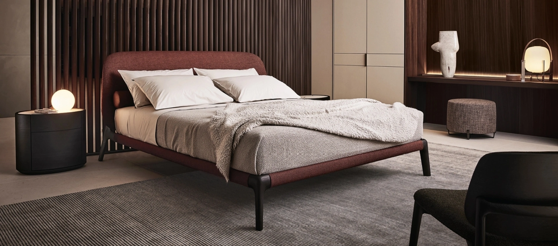 Letto in tessuto Curve di Poliform: si dimostrerà l'ideale per spazi moderni, è una soluzione pensata per garantire il sonno più profondo come meritate. I Letti sono i protagonisti di ogni zona notte, arredi essenziali per garantire un riposo tranquillo e ristoratore e l'ottimale supporto per la colonna vertebrale. Con noi potrai realizzare la camera da letto proprio come l'hai sempre sognata, bella e di grande qualità nonché completa di una grande varietà di elementi accessori moderni. Il rinomato marchio è lo specialista del riposo: un ricco catalogo di modelli matrimoniali imbottiti, anche realizzati in tessuto, ti aspetta nel nostro showroom.