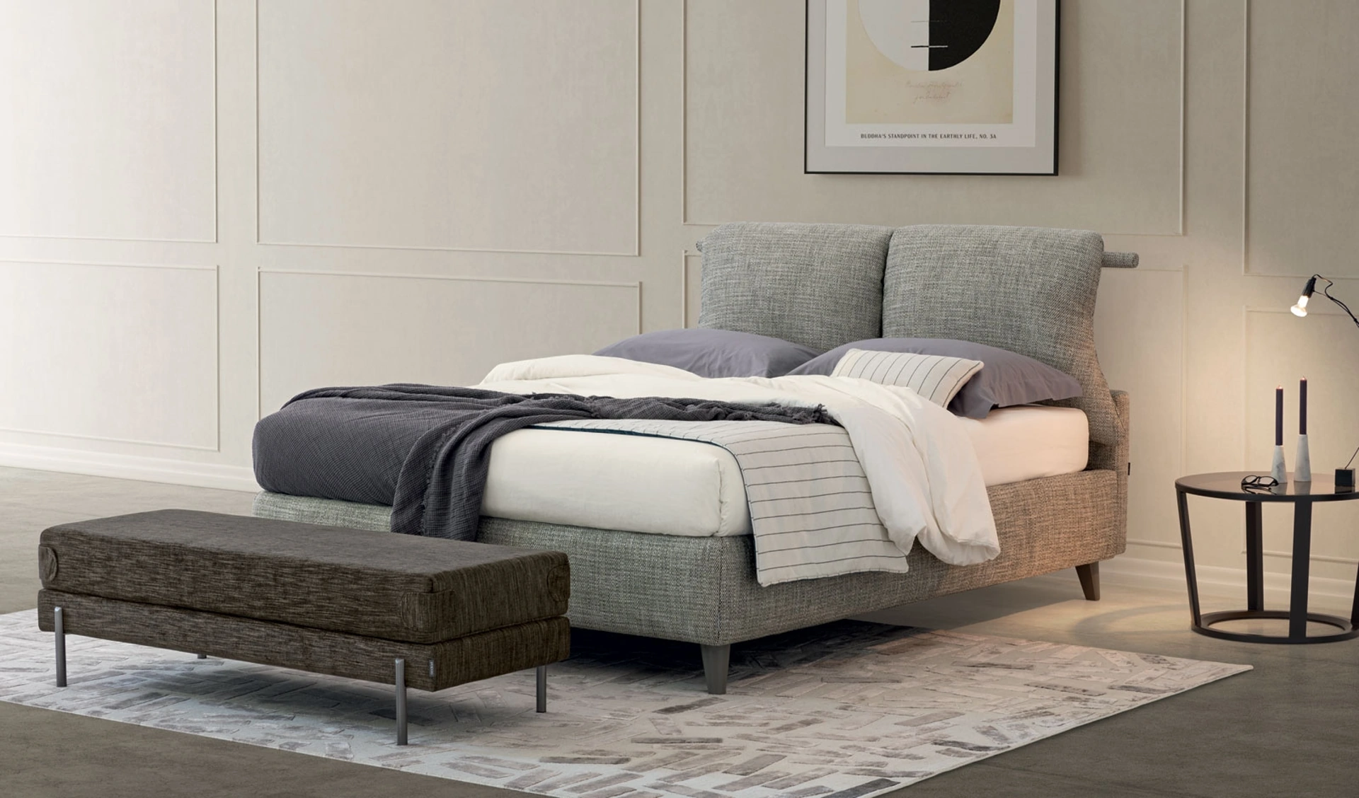 Durante l'acquisto di un buon modello di letto, valuta con attenzione le sue misure, i materiali, la forma e il suo stile rispetto al resto degli arredi. Scegli cromie e finiture e realizza il tuo concept d’arredo nella camera da letto, progettandola proprio come l'avevi sognata. I Letti matrimoniali imbottiti della marca, specialista nella produzione di Arredamento Casa per la zona del riposo, sono progettati per essere abbinati a mobili e complementi di ogni genere, come armadi e comodini, lampade e piantane. Se vuoi una soluzione in tessuto, il modello presente in foto è caratterizzato da materiali di prima scelta e forme decise, che invitano a passare un sonno completo e rigenerante.