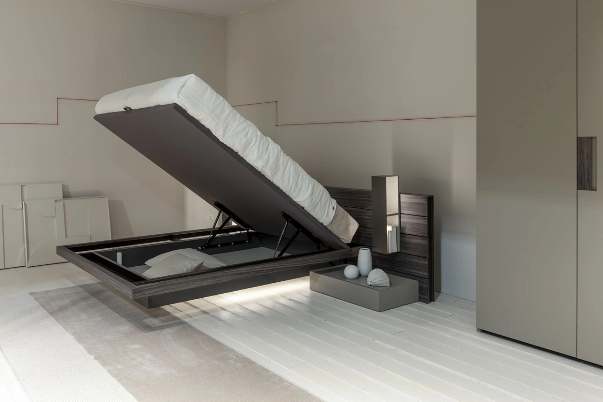 Se desideri creare un'atmosfera intima e rasserenante, il modello presente in foto fa per te: nella stanza del relax dovrai creare un'atmosfera rasserenante, per farti ritemprare le energie psicofisiche come meritate. Durata delle finiture e grande comfort sono gli aspetti che distinguono tutti i prodotti del marchio, tra cui anche il letto in legno nell'immagine. Se desideri arredare spazi moderni, ti aspettiamo per farti vedere la nostra design di Arredamento Casa per realizzare il tuo progetto su misura. Con il Letto con box contenitore Sestante di Fimar del rinomato brand, leader del settore, potrai impreziosire la tua camera assicurandoti comfort, praticità e un design pulito.