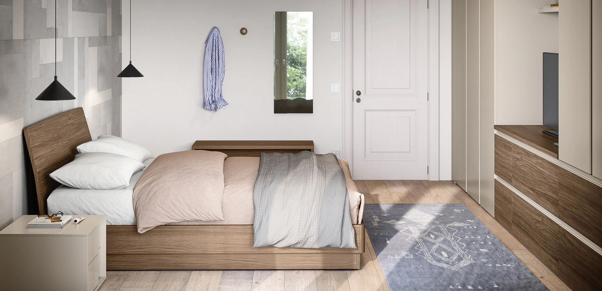 Durevolezza delle finiture e grande comfort sono gli aspetti che connotano tutti i prodotti della firma, tra cui anche il letto in melaminico nell'immagine. Se vuoi creare un'atmosfera intima e rilassante, il modello visibile in foto fa per te: nella stanza del relax dovrai creare un'atmosfera rilassante, per farti ritemprare le energie ogni notte. Se vuoi arredare spazi moderni, ti aspettiamo per presentarti la nostra profilo di Arredamento Casa per realizzare il tuo concept su misura. Con il Letto con testiera Zurigo di Cinquanta3 del noto e rinomato marchio, leader del settore, potrai arricchire la tua camera garantendoti comfort, funzionalità e uno stile raffinato.