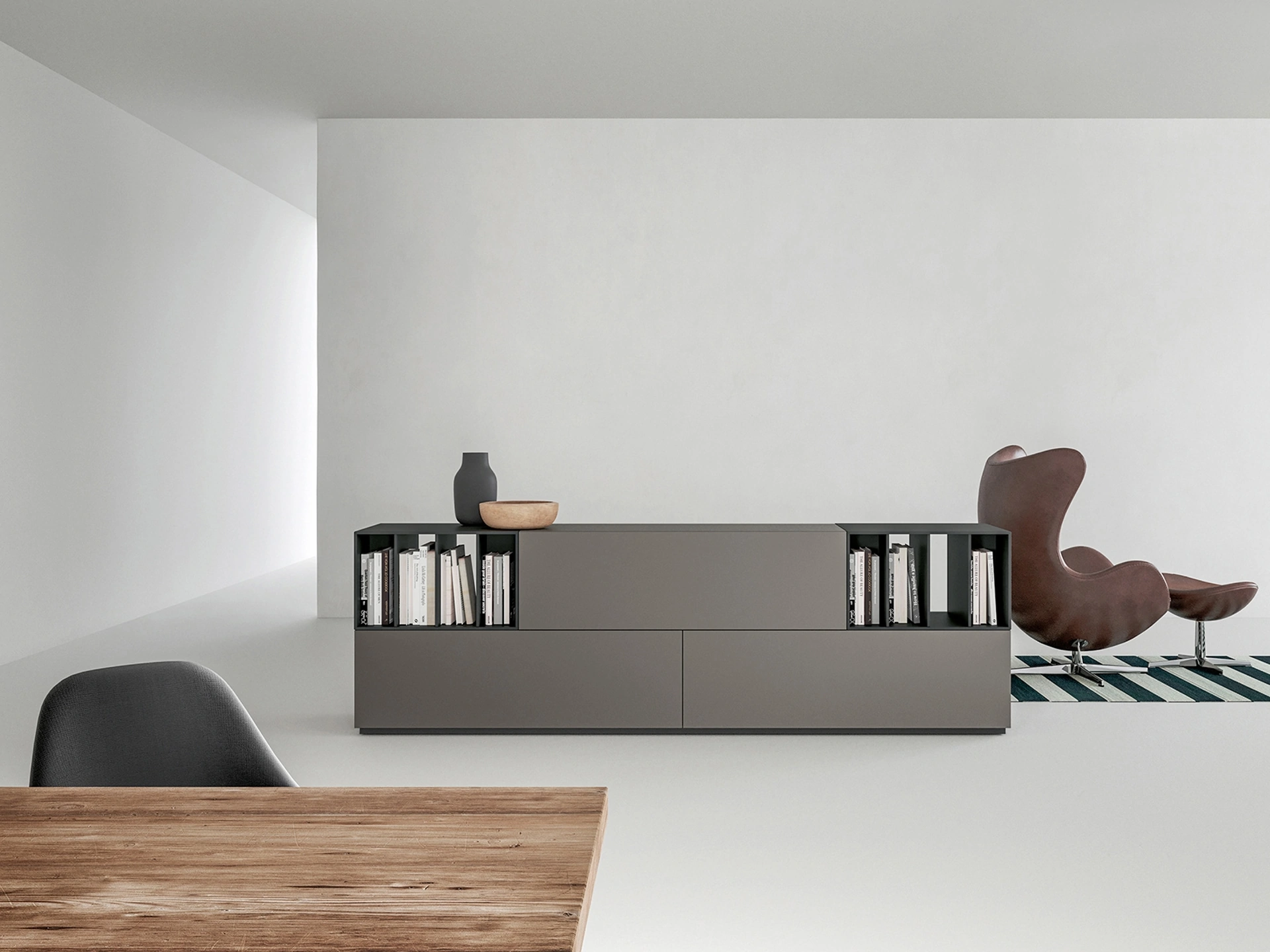 Per gli appassionati nel settore dell'arredo questo modello di mobile soggiorno dalle linee moderne garatisce l'eccellenza del noto e rinomato marchio: contattaci per info e preventivi. Ottimizza il tuo living seguendo le tue esigenze abitative: scopri nel nostro punto vendita un ricco catalogo di mobili soggiorno, anche in laccato opaco come il modello presente in foto. La Madia bifacciale di Caccaro qui visibile con finitura in laccato opaco è la soluzione ottimale, poiché regala un tocco raffinato al living.