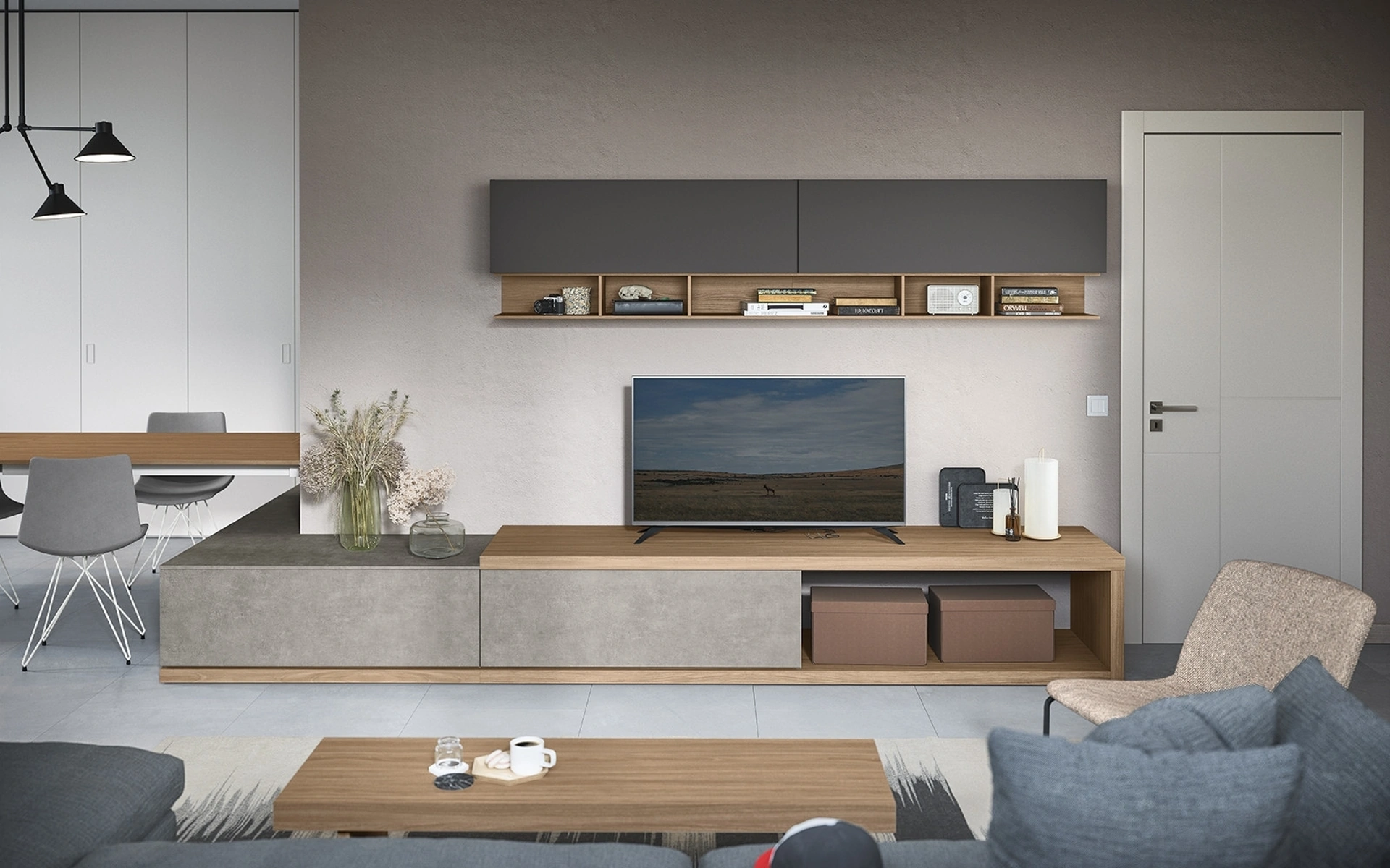 Cinquanta3 offre a catalogo inediti modelli di mobili soggiorno, diversi per stile e forme, finiture e accessori: scopri nel nostro punto vendita l'Arredamento Casa dei migliori brand. Lasciati ispirare da un ricco catalogo di mobili per la zona giorno e troverai la parete attrezzata che fa per te. Visto che il living deve essere uno spazio ben organizzato e bello a vedersi, sono molto utili alcuni mobili belli e funzionali come le Pareti Attrezzate. La Parete Attrezzata 05B di Cinquanta3 nella fotografia è una tra le più esclusive soluzioni d’arredo sul mercato: grandi doti di componibilità e le varie opportunità di progettazione la rendono bella e di grande qualità.