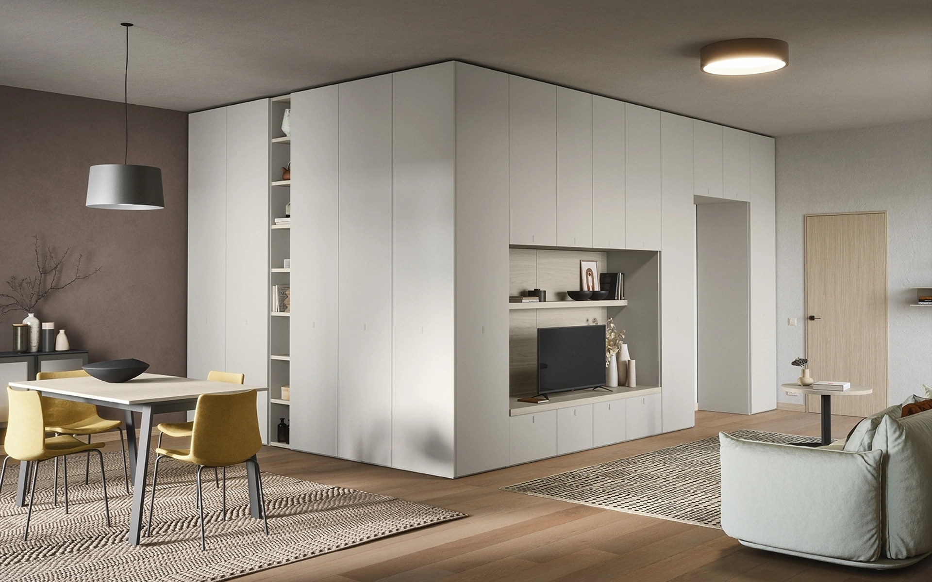 I mobili soggiorno in melaminico dalle linee moderne come il modello nella fotografia sono davvero polivalenti e capaci di progettare il living sfruttando bene ogni angolo. Lasciati stuzzicare da una ricca gamma di arredi per la zona giorno e potrai trovare la parete attrezzata che fa per te. Cinquanta3 mette a disposizione originali modelli di mobili soggiorno, diversi per stile e forme, texture e componenti: scopri nel nostro showroom l'Arredamento Casa dei migliori produttori. Dato che il living deve essere uno spazio agevole e di grande valore estetico, sono molto utili alcuni arredi belli e funzionali come le Pareti Attrezzate.