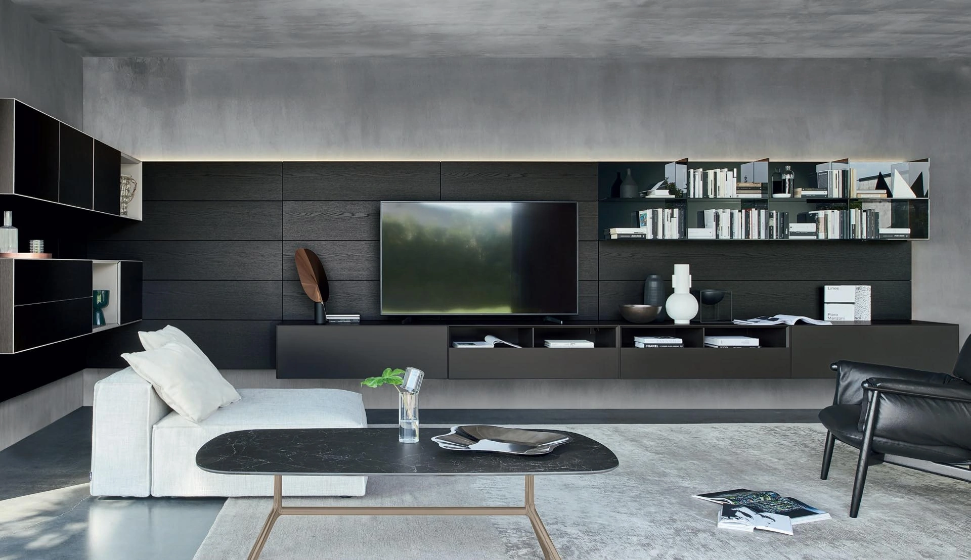 La Parete Attrezzata Domino 09 di Sangiacomo nell'immagine, con finitura in laccato opaco, risolve le più personali esigenze abitative di stile e spazio senza rinunciare alla ricerca estetica. Un po’ librerie, un po’ mobili contenitori ed espositori: le Pareti Attrezzate sono ideali per organizzare un luogo pratico e dinamico. Anche in un living di dimensioni contenute, questo tipo di arredo riesce a ottimizzare gli spazi sfruttando bene ogni angolo e assicurando grandi doti di componibilità tipica delle soluzioni moderne. Questa soluzione costituisce tutta l'eccellenza che il brand assicura grazie a pluriennale professionalità e grande dedizione nel campo dell'arredo e del design.
