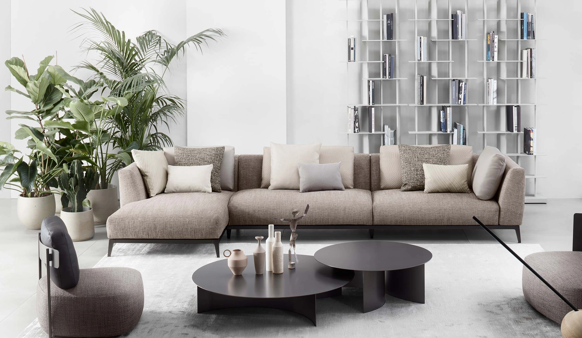 La serie di divani del marchio in questione presenta tanti spunti originali per impreziosire il living in nome di funzionalità, comfort e stile. I nostri Salotti sono pensati per essere abbinati a elementi accessori di ogni genere, come tavolini, abat jour e piantane oppure in combinazione con ulteriori divani in tessuto. Il catalogo Flou presenta tanti spunti per impreziosire gli interni in nome di funzionalità e valore estetico, mettendo al centro il tuo comfort. Se vuoi imbottiti con penisola come il modello nella fotografia, caratterizzato dai volumi che invitano a passare i tuoi momenti di riposo.