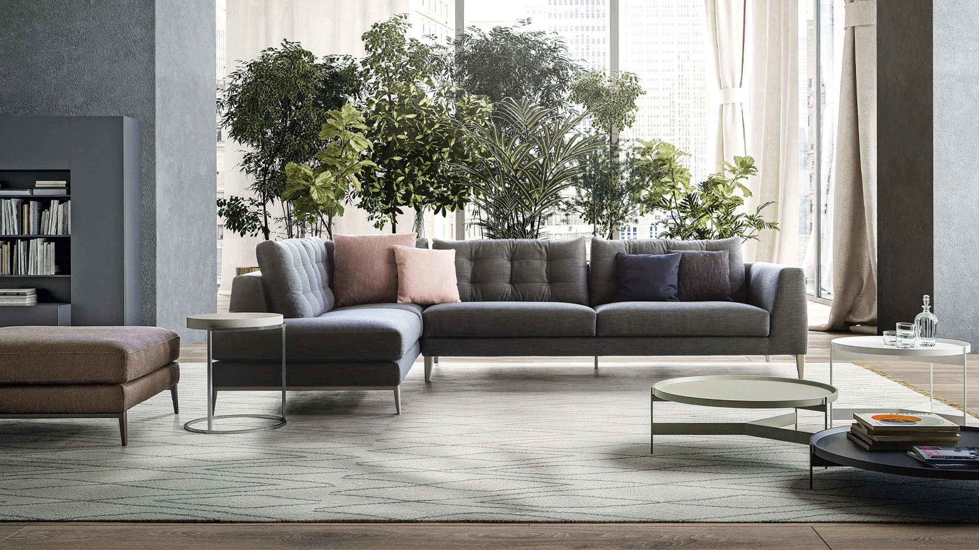 Divano angolare Time di Pianca: crea uno spazio intimo e confortevole in spazi moderni dall'estetica raffinata. Se desideri divani e poltrone ad angolo come il modello nell'immagine, connotato dai volumi che invitano a goderti i tuoi momenti di relax. La linea di divani dell'azienda in questione propone svariate possibilità peculiari per decorare il living in nome di funzionalità, comfort e stile. I nostri Salotti vengono progettati per essere abbinati a elementi accessori di ogni genere, come tavolini, abat jour e piantane o in combinazione con ulteriori divani in tessuto.