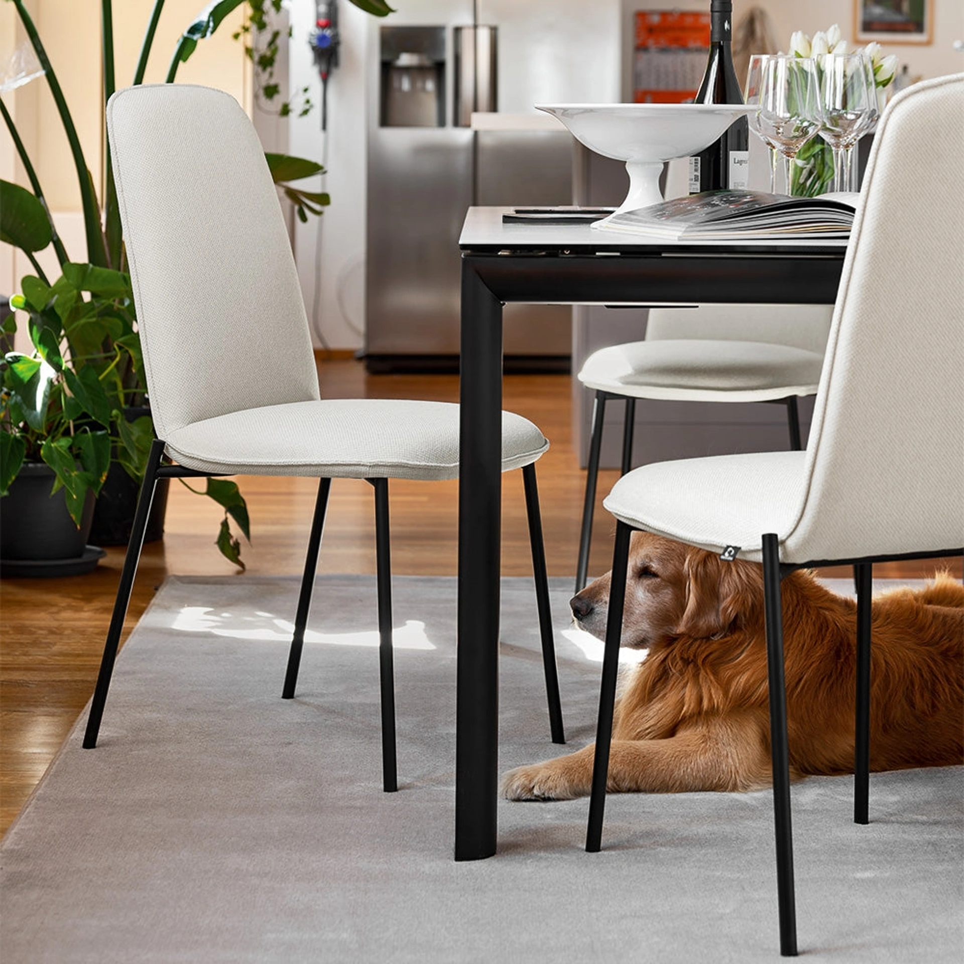 Se vuoi una sedia in tessuto per completare l’atmosfera di casa, ottieni informazioni sul modello nell'immagine e trova un tavolo coordinato. Nel living o nella cucina, le Sedie sono mobili essenziali: sottolineano il mood dell'ambiente e rispondono a una funzione essenziale. Sedia in tessuto imbottito Riley di Connubia: questo modello andrà a completare spazi di ogni genere, in modo particolare ambientazioni moderne. Il living e la cucina non sono davvero accoglienti e confortevoli se arredati con le Sedie sbagliate, ecco perché devono essere abbinate al resto degli arredi e alle dimensioni della stanza.