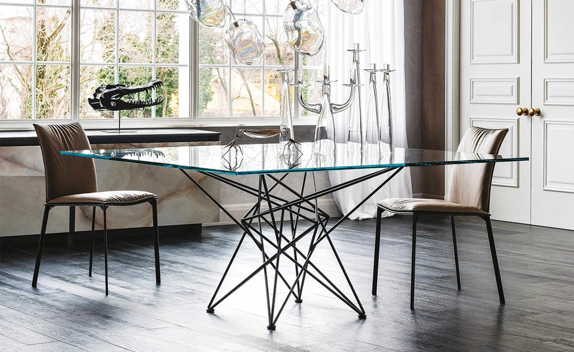 Ideali per dare vita a degli accostamenti unici con sedie e complementi moderni, i Tavoli fissi del marchio sono soluzioni tra le più belle in commercio, ideali per il living e la zona cucina. Il rinomato marchio Cattelan Italia, leader nella realizzazione di mobili in vetro, ha scelto per la sua linea una vasta scelta di finiture, linee e cromie. Se vuoi un tavolo da pranzo di elevata qualità, contattaci e ricevi informazioni e preventivi sul modello mostrato in foto. Un modello come quello nell'immagine, in abbinamento alle giuste sedie, saprà arricchire il mood delle stanze domestiche dedicate per eccellenza alla convivialità.