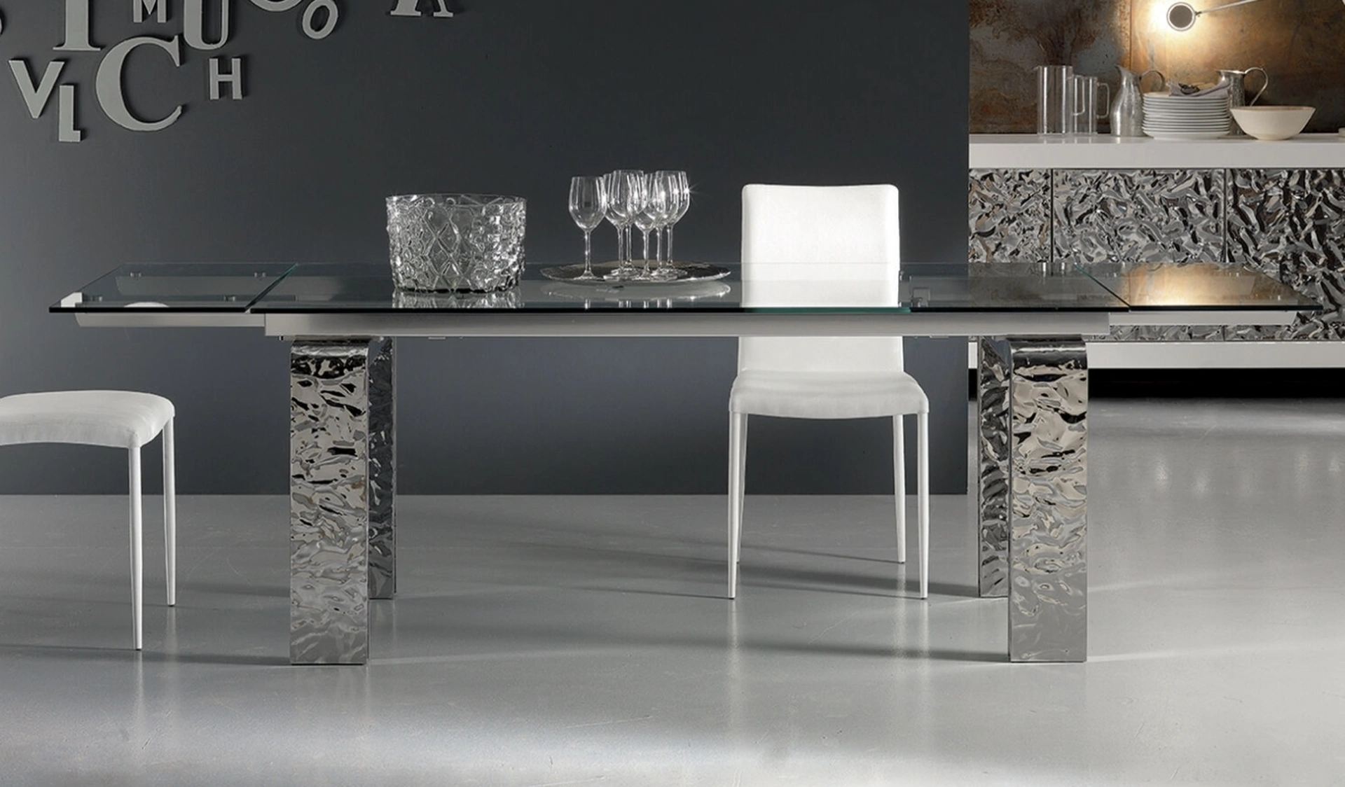 Ideali per dare vita a degli accostamenti unici con sedie e complementi design, i Tavoli allungabili della marca sono soluzioni tra le più belle in commercio, ideali per il soggiorno e la zona cucina. Tavolo allungabile Mito di Riflessi: realizzato in materiali di prima scelta è connotato dalle linee decise del top e da un basamento ricercato ed elegante. Un modello come quello nella fotografia, in abbinamento alle giuste sedie, saprà arricchire il mood delle stanze domestiche dedicate per eccellenza alla convivialità. Il noto e rinomato brand Riflessi, specialista nella produzione di mobili in vetro, ha scelto per la sua linea una vasta scelta di materiali, linee e cromie.