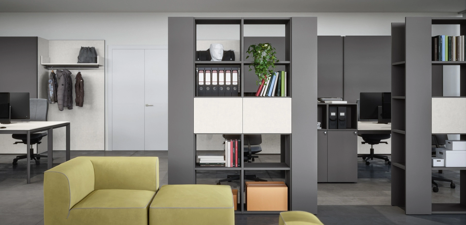 Il rinomato brand lavora sempre al passo con le necessità individuali, di fatto propone ogni sorta di Arredo Ufficio in melaminico. Nel nostro punto vendita proponiamo molteplici composizioni arredative con librerie per ufficio Cinquanta3 in melaminico, sempre in materiali pregiati e resistenti nel tempo. Materiali di prima scelta, un elevato contenuto estetico e design unico contraddistinguono la ricca collezione di mobili per gliambienti lavorativi del brand Cinquanta3. Al giorno d'oggi l’Arredo Ufficio deve accontentare le esigenze di funzionalità e comfort per chi svolge il lavoro, quelle di accoglienza e serietà soprattutto per i clienti.