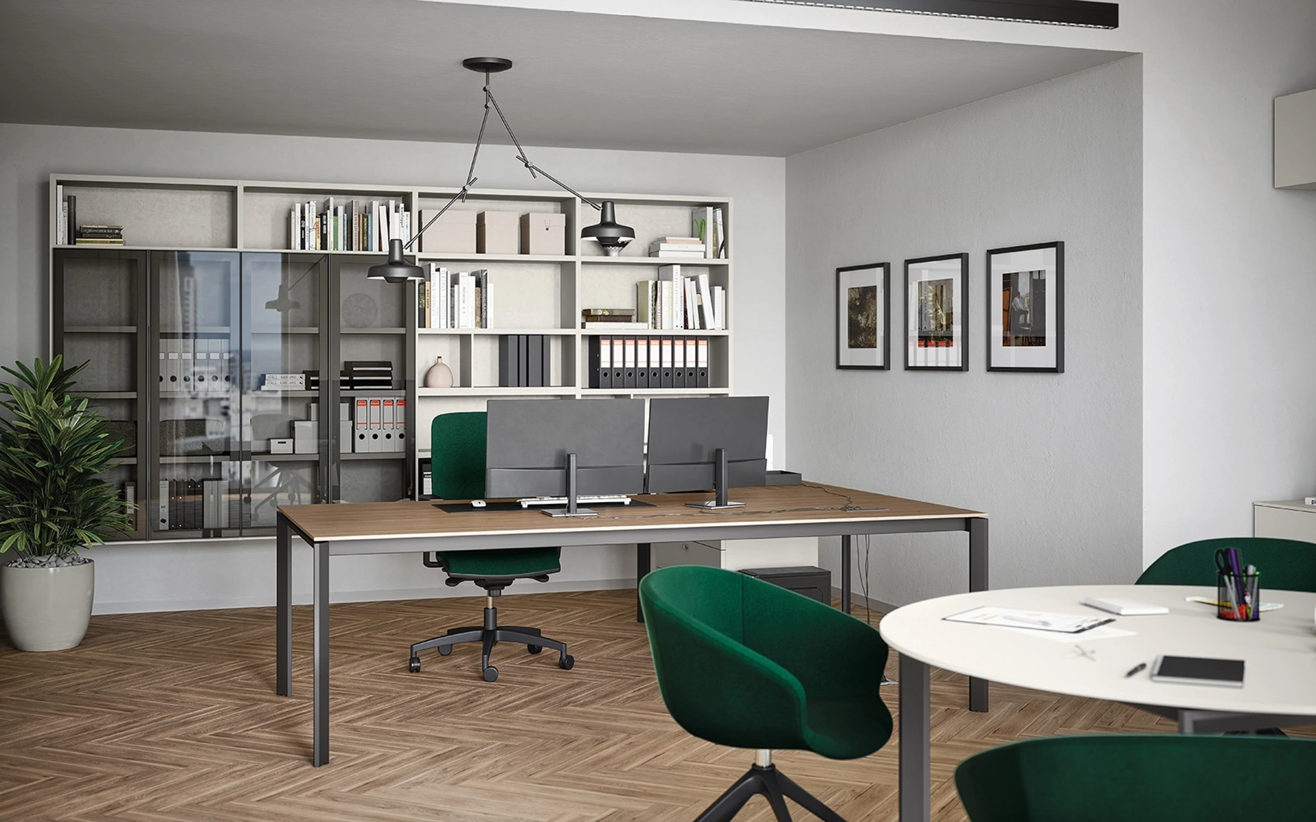 Materiali di prima scelta, una buona resa estetica e linee ben studiate rendono riconoscibile la ricca collezione di arredi per gliambienti lavorativi del marchio Cinquanta3. Il rinomato marchio si muove sempre al passo con le esigenze personali, di fatto produce ogni sorta di Arredo Ufficio in melaminico. Nel nostro showroom presentiamo diverse composizioni con scrivanie direzionali Cinquanta3 in melaminico, sempre in materiali di prima scelta e resistenti negli anni. Scrivania Direzionale 02B di Cinquanta3: su misura per ultimare glispazi lavorativi assicurando l'agio di chi ci lavora, con una buona resa estetica.